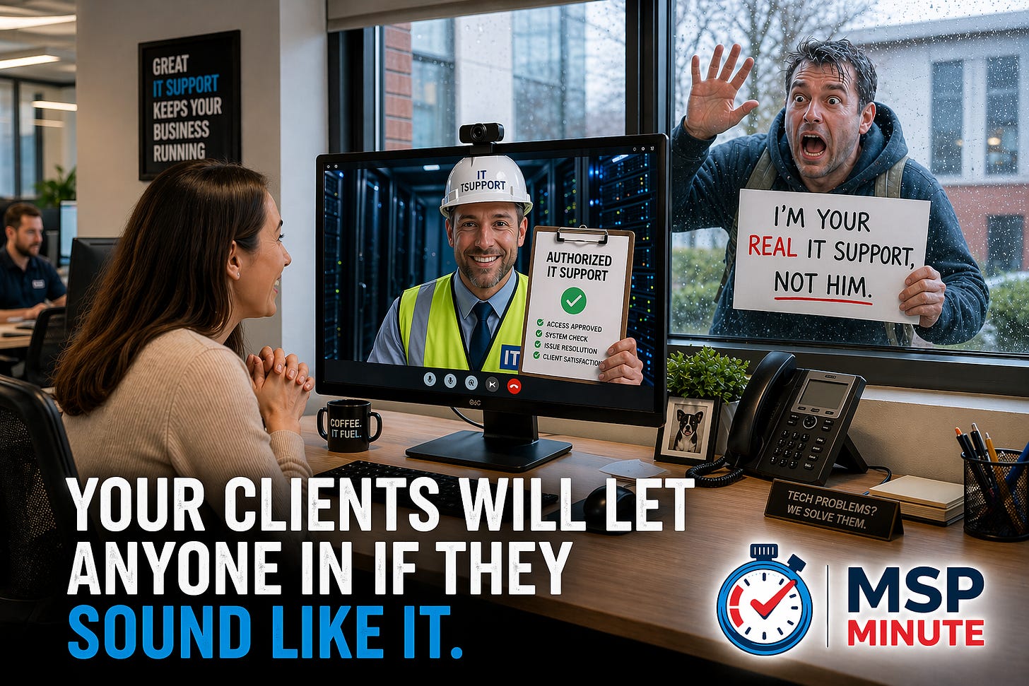Think about what that means for you specifically. You ARE the IT helpdesk for your clients. Your name and your team’s name are already in their heads as trusted. An attacker impersonating your helpdesk through Teams isn’t just plausible: It’s believable.